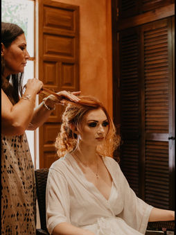 Signature styles I enjoy creating include Hollywood waves, soft textured up styles, or a sleek low bun or chignon. I believe that the majority of brides want to look like the best version of themself. I love creating the foundation of their look with beautiful fresh dewy skin, subtle contour, highlight and soft blush giving a gorgeous radiant glow, subtle shimmering eyes and gentle sweeping lashes or intense smokey eyes finish the perfect look. For some brides a flick of eyeliner and a vibrant red lip give Hollywood glam vibe. It's all about personality and the complete look, I listen and consider all elements to create a look that best suits each bride. I only use the best quality products and luxury brands.